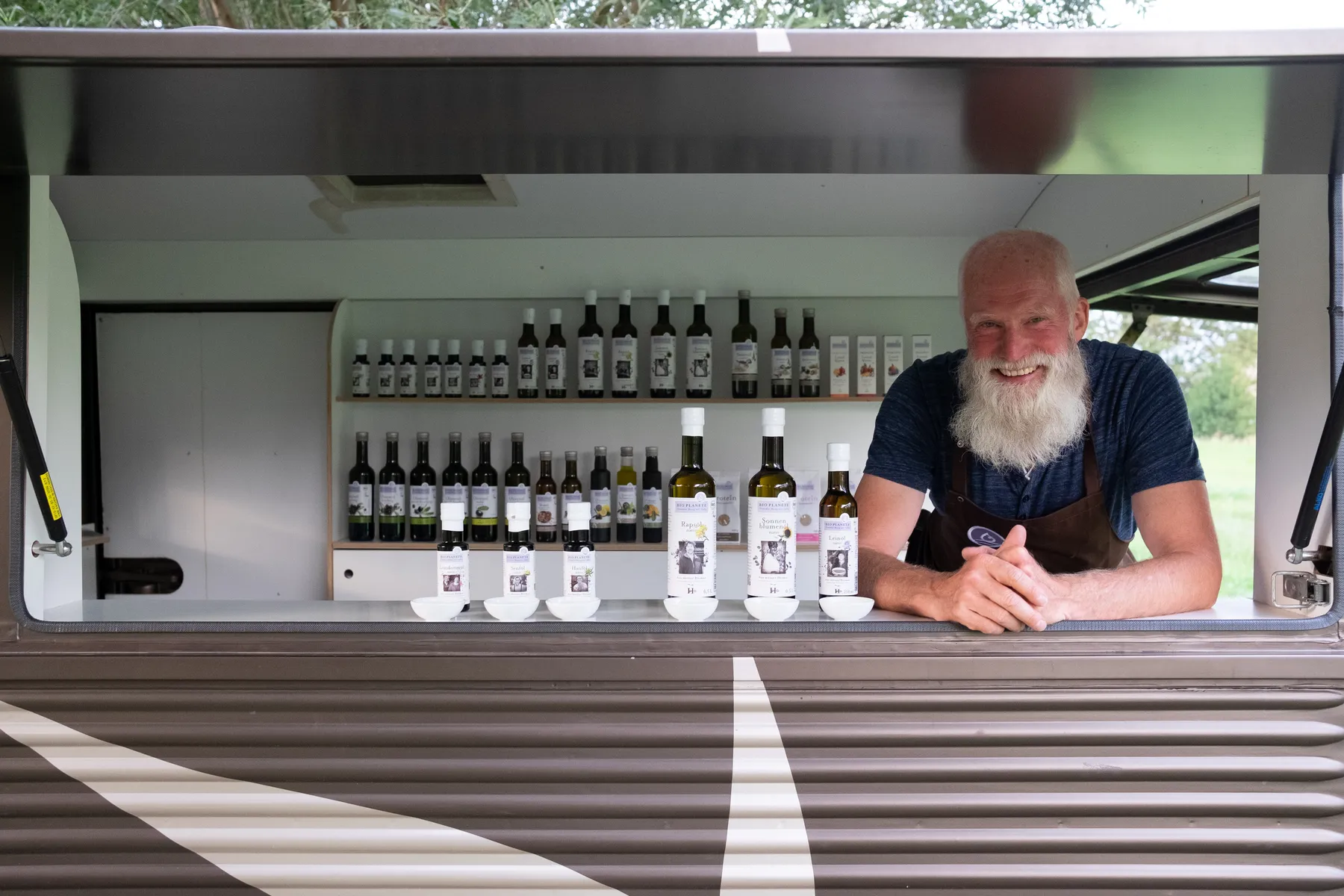 Kennen Sie unseren Hy? Gemeint ist damit unser Oldtimer vom Typ Citroën HY IN, den wir schon seit mehr als zehn Jahren als Oleomobil nutzen. Zu unserem 40. Jubiläum ist er wieder in der ganzen Republik unterwegs – mit an Bord unser Genussbotschafter Lutz und natürlich unsere leckeren BIO PLANÈTE-Öle wie zum Beispiel die Ölkomposition für Pizza & Pasta, das O’citron oder das 2-Phasen-Dressing O’range & Balsamico.