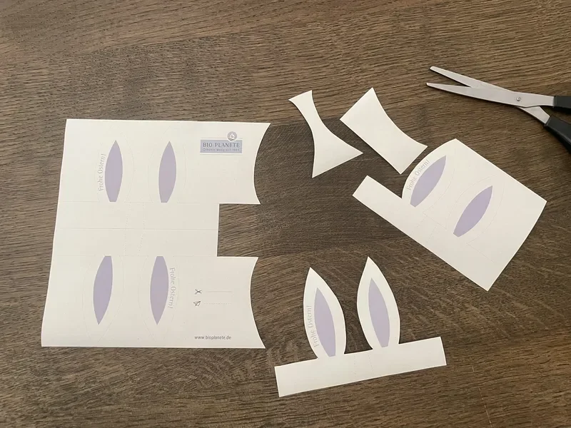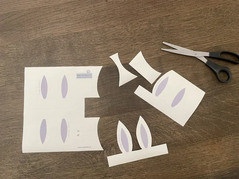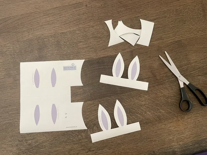 - Drucken Sie unsere kostenlose Vorlage für Hasenohren aus und schneiden Sie diese aus.